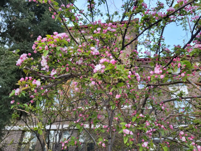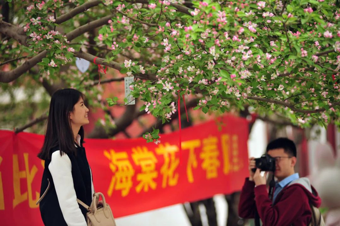 在校园赏海棠