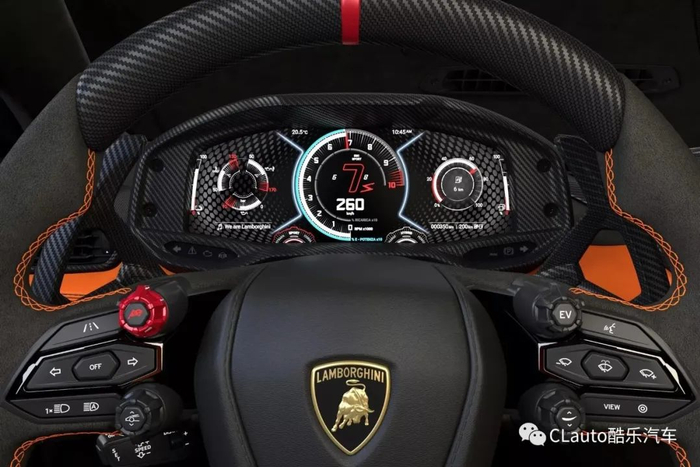兰博基尼表示,这两个屏幕加上乘客前面的第三个9.1英寸数字屏,由一个行车电脑控制,确保外观和操作方式的相同,其甚至可以将信息从中央屏幕“滑动”到其他屏幕。