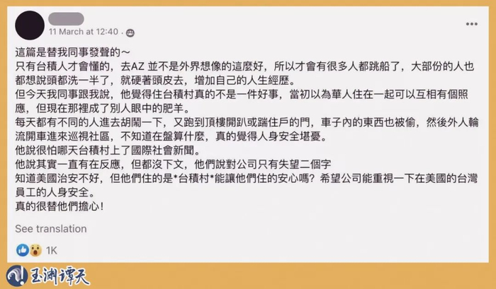 并且,不仅是台积电本身,那些去到美国的台积电人,过得也并不舒服。
