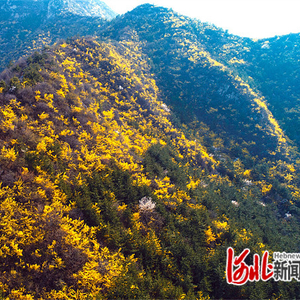 阳春三月,春暖花开。涉县偏城镇桑栈村的山坡上,连翘怒放,满山金黄。
