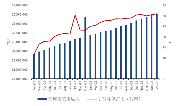 图3:集装箱船队手持订单量与总运力占比