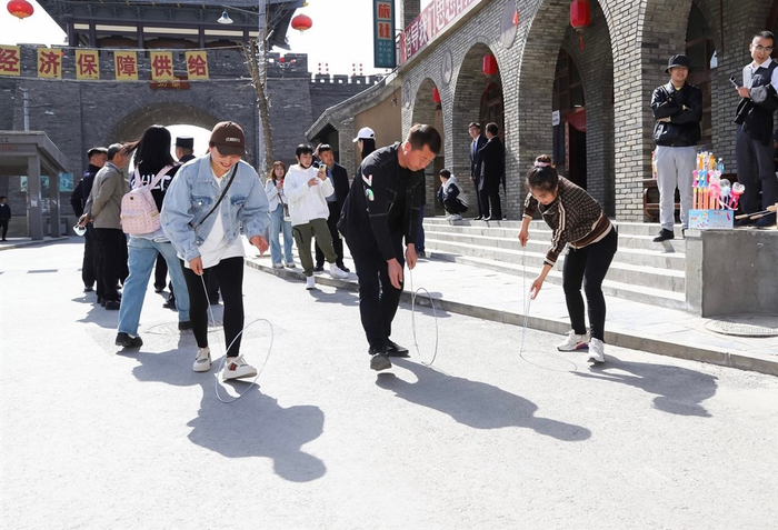 高加林带学生们逛的新华书店、高加林和刘巧珍购买发表了高加林文章报纸的邮局、以及刘巧珍为给高加林做中山装去的供销社……这些男女主人公重要的戏份,都是在人生影视城基地取景。不少游客跟着剧中的场景拍照打卡,也有一些游客踢键子、滚铁环、打陀螺,找回儿时的时光。