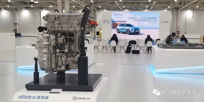 活动现场展出的这款就是基于扁线绕组技术、最大输功率180千瓦、最大输出扭矩330牛米、最高转速15750转/分的前置“7合1”电驱动系统,将搭载在别克E5的前驱车型上。