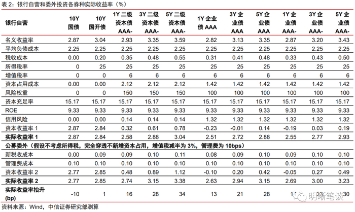 商业银行有动力通过公募委外增配高等级中短久期信用债。目前大多数银行资本充足率指标具有较高的安全边际,在风险加权资产限额下增配信用债能够显著提高实际收益率,缓解银行净息差的压力。且为规避税收成本,商业银行或通过公募委外渠道投资于高等级中短久期信用债。委外渠道需特别关注银行投资资管产品的最新风险权重规定,后续银行委外需求应建立在底层资产易于穿透的基础之上。