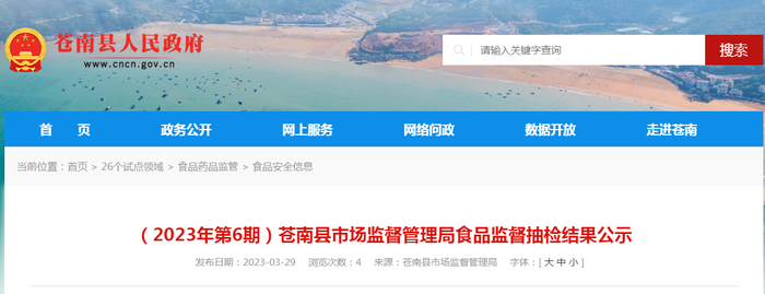 浙江省苍南县市场监管局公示食品监督抽检结果(2023年第6期)