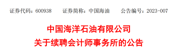 审计费6151万!中国海油续聘会计师事务所!
