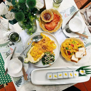 那些甜蜜小菠萝、夜市铁锅里翻滚几下就香气四溢的炒饭和炒粉、拌着米饭能干完一整碗的青咖喱鸡、吃撑了也要来一份的甜糯芒果糯米饭,混合着西双版纳闷热潮湿的氤氲空气,不断撩拨着行人的味蕾。