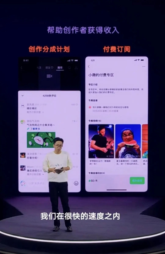 张孝超表示,视频号在今年将进一步帮助创作者增收,包括推出全新的创作者分成计划,以及为优质创作者提供付费订阅功能。付费订阅功能将支持创作者设立付费内容专区,用户通过缴纳月费成为会员。