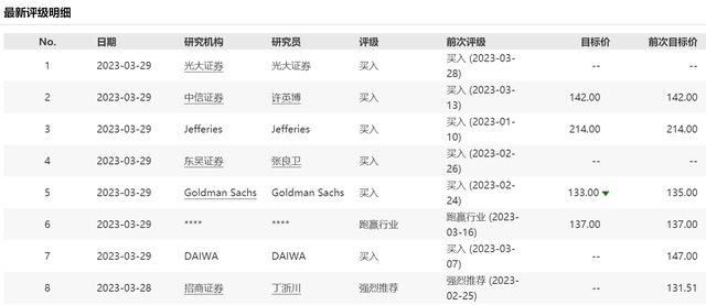 方案发布后至澎湃新闻发稿时,Wind数据显示,至少有8家机构给出了新的评级,不过基本都维持此前“买入”“强烈推荐”“跑赢行业”的评级;目标价方面,7家维持不变,1家小幅下调。