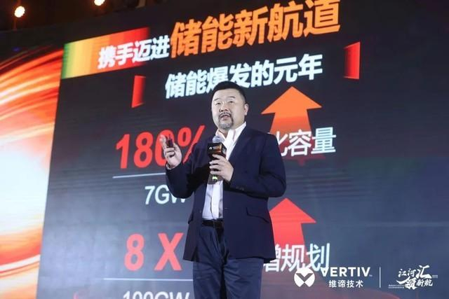 在本次大会上,维谛技术(Vertiv)大中华区销售副总裁李纬、武汉赫岩科技股份有限公司董事长许文涛,通过联合演讲的形式分享了双方合作的成果和价值。
