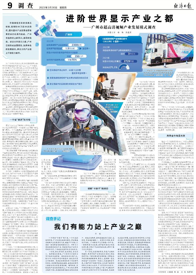 全国领先、独具特色的超高清发展路径是如何形成的?在国内外百舸争流、千帆竞发形势下,广州又将如何进阶世界显示之都?经济日报记者近日在广州展开了调查。