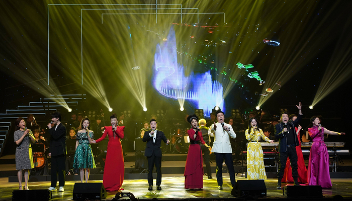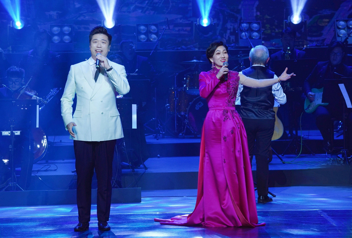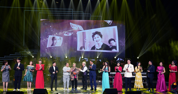 《征程》音乐会中,有两位“年轻的80后”赢得了最多的关注和掌声,他们就是上海轻音乐团创始人、著名女高音歌唱家朱逢博和乐团创始人之一,著名作曲家、指挥家屠巴海。屠巴海作为音乐会的指挥,一双挥舞的手,带动所有演奏员“乐翻”全场,让观众跟着节奏摇摆。而朱逢博在音乐会的最后与所有歌手共同演唱她的代表作之一《金梭和银梭》,熟悉的旋律响起,背后的大屏上播放着她带领轻音乐团往昔的演出照片,过去、此时相互重叠,一首歌串联起美好岁月,也将向着未来继续高歌。