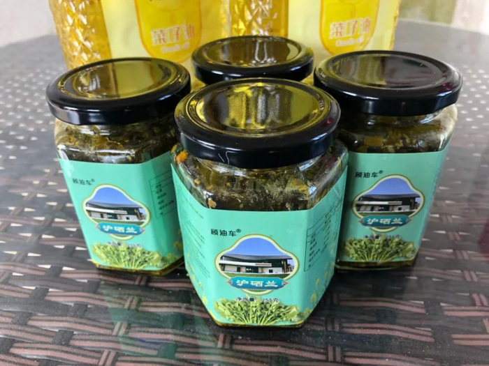 村里合作社负责人介绍说,现在,除了销售新鲜菜薹,他们还开发了周边产品,“一种是熟加工的菜薹,开瓶就可以食用;还有一种是生的,经过腌制的手法,开袋以后需要烹饪后才能食用。”