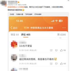 不过,对于钟薛高的刻意讨好,消费者并不买账。虽有网友在微博留言表示,“钟薛高还挺听劝”“3.5元的价格还行,买不了吃亏、买不了上当”。