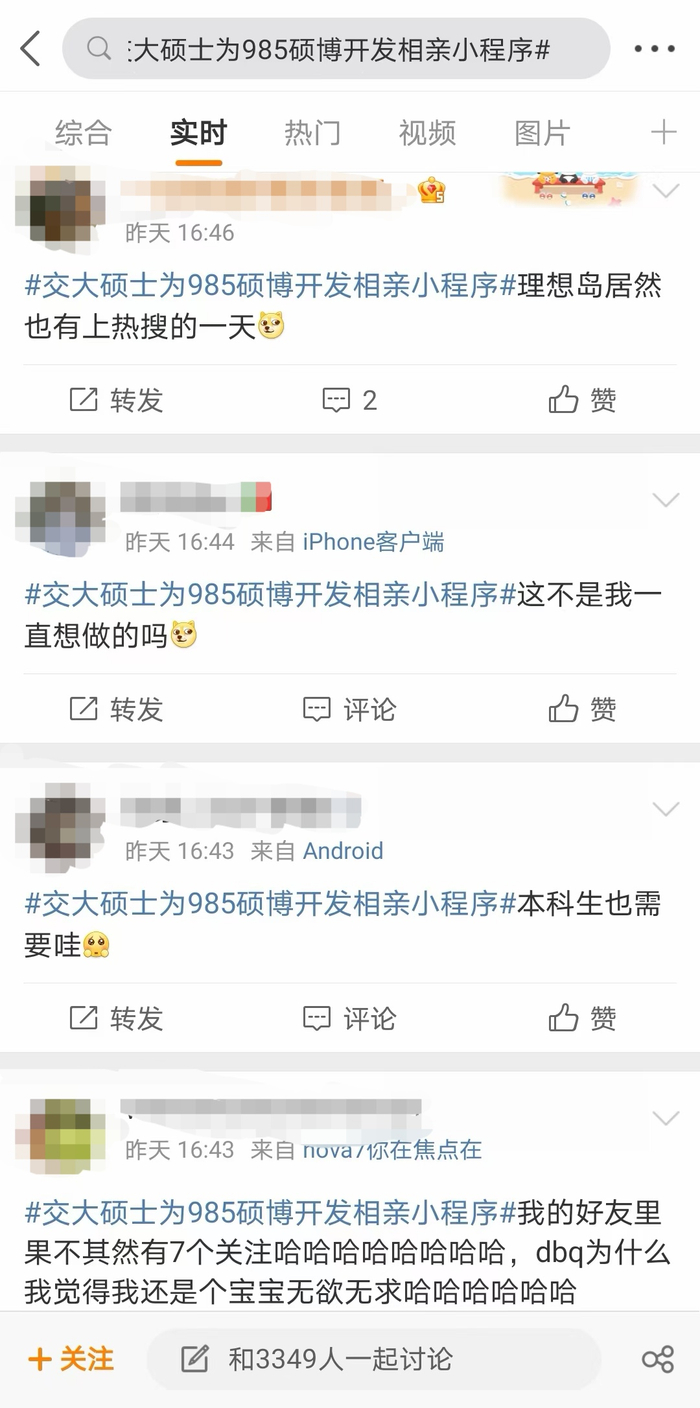 “高学历者想办法解决高学历人群脱单难题”,这款硕博相亲小程序推出后不久,便被上海媒体《新闻晨报》报道,并且还上了一次微博热搜。