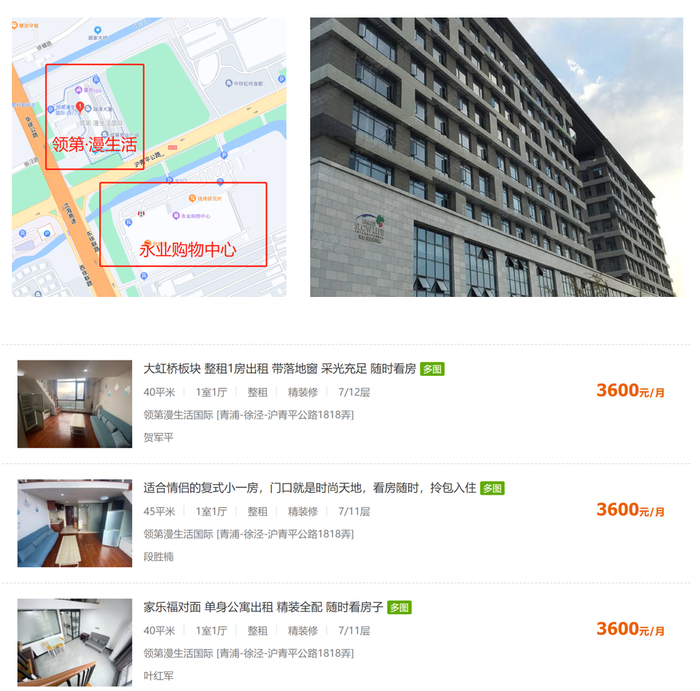 可比项目一叫领第·漫生活,和西虹桥社区一街之隔,40平米1室1厅的挂牌租金在3600元,每平米日租金即3元。