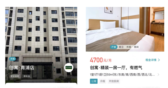 可比项目二是距离西虹桥项目1公里、去年新开业的一个长租公寓项目“创寓”,59平米1室1厅的挂牌租金在4700元,每平米日租金即2.65元。