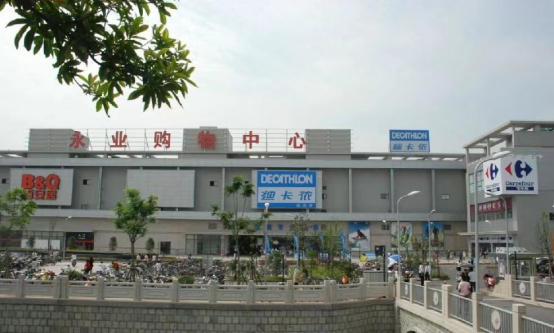 永业购物中心是一座2008年开业的老商业体,虽然有家乐福、迪卡侬这样的主力店,但业态功能比较老旧,人气一般,商铺的空置率也比较高。