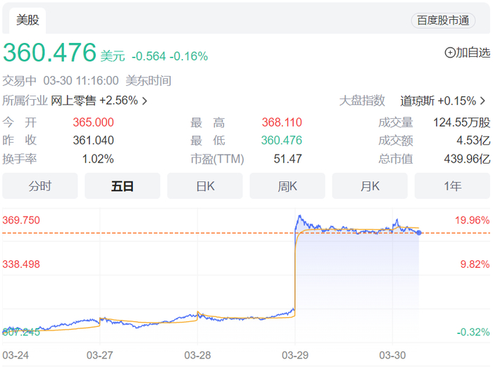 截止美东时间30日上午,lululemon股价跌0.16%,报360.476美元,总市值439.96亿美元。