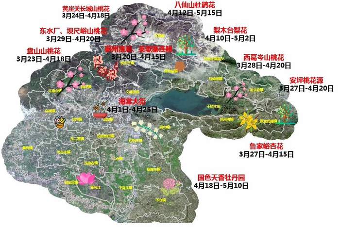 蓟州区:3月29日-4月20日(盘山、黄崖关长城、安坪桃花源)