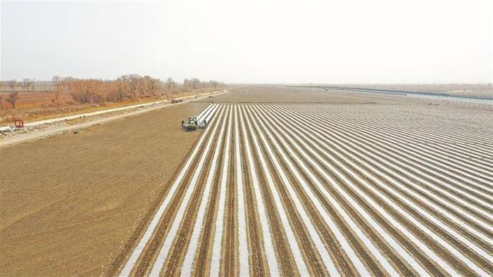 3月27日,二师三十一团11.2万亩棉花播种工作全面展开,在该团七连的棉田里机声隆隆,呈现一派繁忙的春播景象。李春霞 李宁 摄
