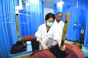 南明区中医医院医生正在为患者进行烙疗治疗。 ▲
