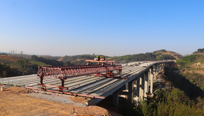 此外,3月29日,勐绿高速公路勐野江特大桥T梁架设双幅提前15天顺利贯通。勐野江特大桥是全线重点控制性工程之一,位于普洱市江城哈尼族彝族自治县勐烈镇境内,大桥全长1416.08米,共计36跨,T梁426片。
