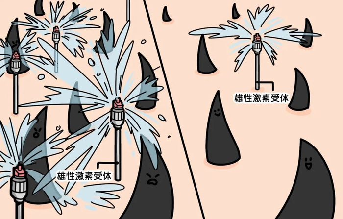 一旦受体多了,就相当于是一片草坪上,安装了过量的灌溉装置。当雄性激素的生长讯号传递过来时,所有的水龙头都会开阀灌溉。