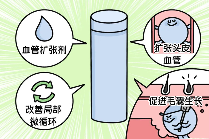 米诺地尔是一种血管扩张剂,目前主要认为它是通过扩张头皮血管,改善局部微循环,促进毛囊恢复活力,以延长毛发的生长周期。