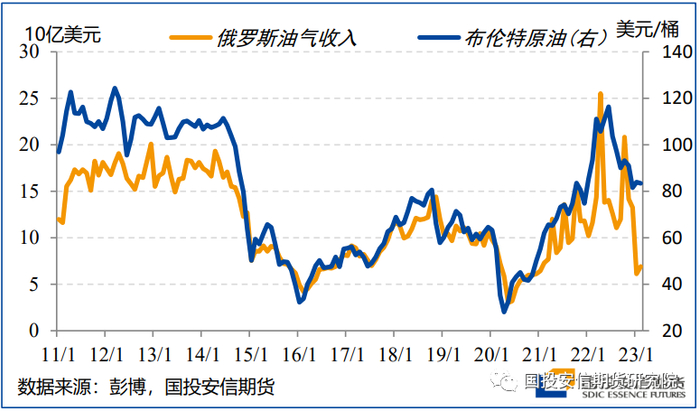 尽管存在亚洲溢价,但受欧盟及G7集团限价的影响,俄罗斯油气收入亦明显受到冲击。12月以来俄罗斯油气收入与布伦特油价明显脱钩,1-2月累计收入仅130.2亿美元,同比降幅40.4%明显超过布伦特油价跌幅6.3%及欧气价格跌幅30.7%。为对冲限价对油气收入的影响,2月俄罗斯政府已出台乌拉尔原油出口计税折扣限制规则,4-7月计税下限对布伦特贴水将逐步缩减至34美元/桶、31美元/桶、28美元/桶和25美元,而根据阿格斯评估价格,去年12月至今年2月乌拉尔原油在波罗的海FOB价格较布伦特贴水月均价在37.3-39.9美元/桶间,计税折扣的强制性缩窄将倒逼俄罗斯原油生产商缩减销售折扣,由此将对以印度为代表的亚太国家接货意愿构成考验,是否因此会导致俄罗斯原油被动减产值得关注。