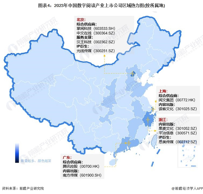 数字阅读产业链区域热力地图:广东企业数量取胜,北京上市企业集聚