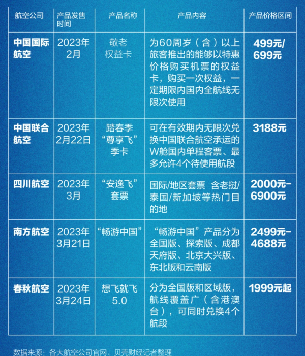 在这样的情况下,已在疫情期间被证明物美价廉的“随心飞”产品,对于航司来说也算是传统淡季刺激非必要出行、补充收益、提高客座率的最直接举措。