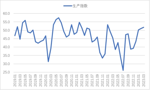 3月份,钢厂生产环境继续改善,需求端持续恢复对钢厂生产有所带动,钢材产量保持上升。生产指数为51.8%,环比上升0.7个百分点,连续5个月环比上升,显示钢厂生产活动持续回暖。据中钢协统计,3月中旬,重点统计钢铁企业粗钢日产225.31万吨,环比增长4.71%。生铁日产196.5万吨,环比增长2.34%,钢材日产213.73万吨,环比增长5.54%。