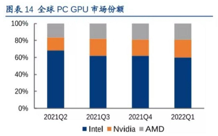 英特尔(INTC.US)英特尔是全球最大的PC GPU供应商,也是PC和服务器显卡唯一的IDM厂商。
