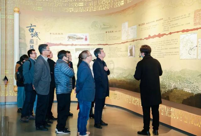 |好酒中国行科学考察团队们在义乌城市规划馆做调研,图为工作人员向大家讲解义乌的古城历史。