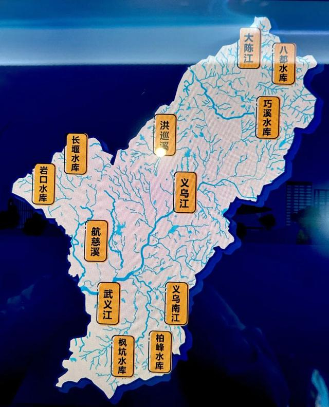 |义乌水系水网分布图,图片拍摄自义乌城市规划馆。