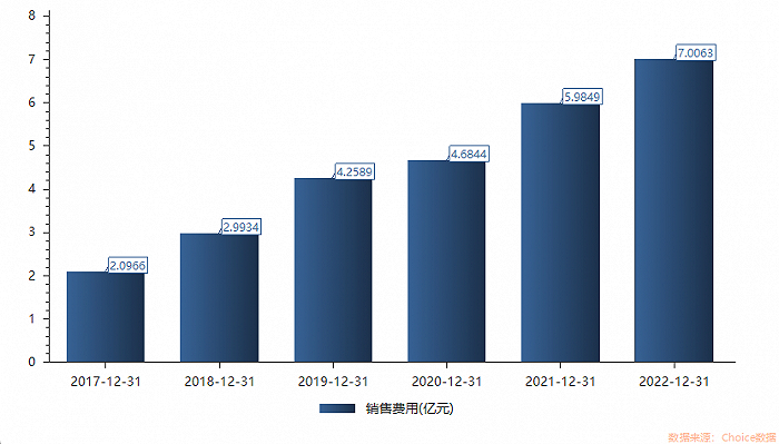 值得注意的是,健帆生物的销售费用极高,且在逐年增长。此前公司营业收入与销售费用同步增长,但2022年公司营业收入同比下滑之时,销售费用依然增长至7.01亿元,约占总营收的28%。