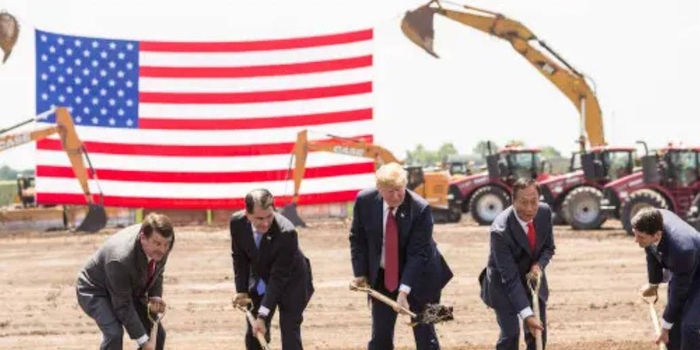 印度建厂计划屡屡受阻的同时,富士康为了响应美国制造业回流的政策,于2018年在美国威斯康辛州宣布建设液晶面板厂,美国前总统特朗普更是出席了动土典礼。