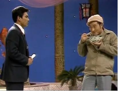 据说,春晚总导演黄一鹤第一次见到陈佩斯和朱时茂是在食堂。两人当时的即兴表演,让大家笑得坐地上都起不来。黄一鹤乐得是一边擦眼泪,一边竖起大拇指!当时他们表演的,就是后来的《吃面条》。