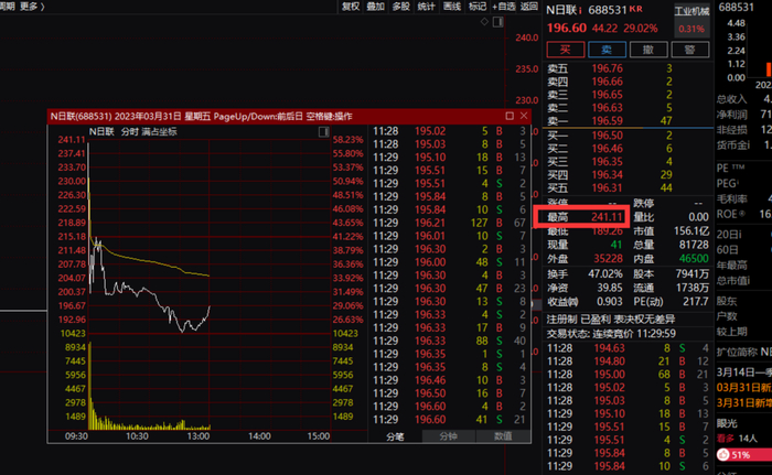 行情数据显示,日联科技上午股价一度达241.11元,较发行价涨58.23%,若按照上述最高价计算,中一签新股浮盈最高约4.44万元,日联科技发行价为152.38 元。