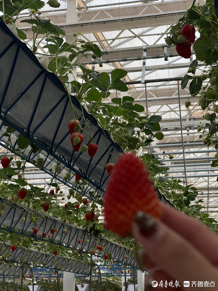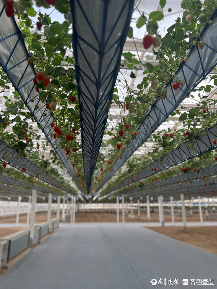 依托工业发展的资源优势,把农业相关产业“变废为宝”,蔬菜大棚、水果大棚、鱼池、藕池等绿色无公害农业项目,已经在产业园扎根落地。在草莓大棚里,草莓“瀑布”从头顶倾泻而下,半空中,上下两层钢架上长满了草莓,一排排无土栽培槽整齐排列,据了解,这些长在“空中”的草莓,已经全部实现了无土化栽培。“利用‘草莓天瀑’生产草莓,产量是传统方式的2—3倍,一亩地可当3亩地的产量。凭借智能智慧生产方式,我们大棚产出的草莓1公斤售价可达198元,大大促进了村民增收。”
