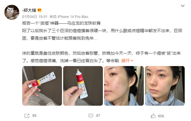 有的人用马应龙龙珠软膏,称它为“拔痘”神器