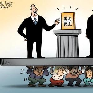 民主专制二元对立叙事由此展开:凡是学习模仿美式民主的过程,就是“民主化”,坚持探索自己政治发展道路的,则被列为违背“民主”潮流的“非民主”国家,民主自此成了美国自我标榜和干涉打压别国的意识形态利器。