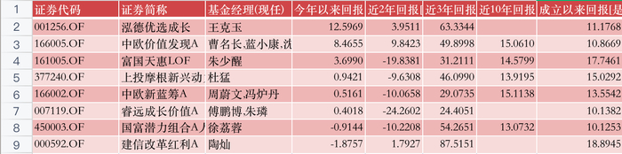 最后,看一下Z哥关注的这几位双十基金经理今年以来的表现。