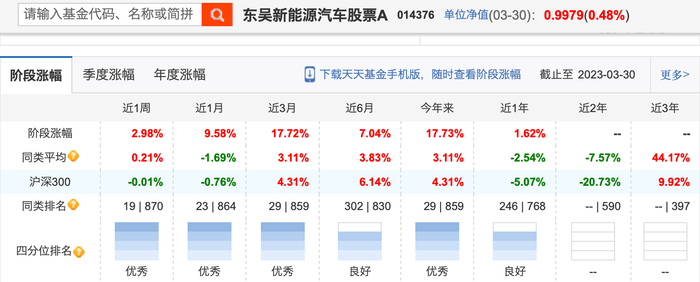 股票牛基中,有一个产品比较意外,就是东吴新能源汽车,在今年整个新能源汽车产业链表现惨淡的局面下,最终取得了17.7%的收益。