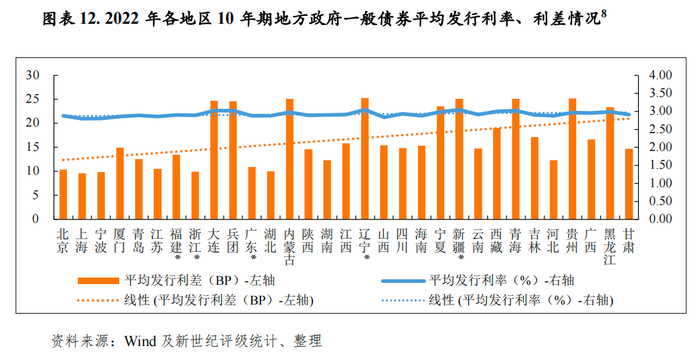 (四)2022年地方政府债券发行利率及利差情况