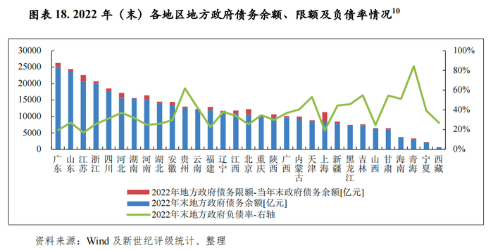 [10] 各地区按2022年末地方政府债务余额降序排列,下图表同。此外,由于财政部尚未下达云南省2022年政府债务限额,沿用上年数据。