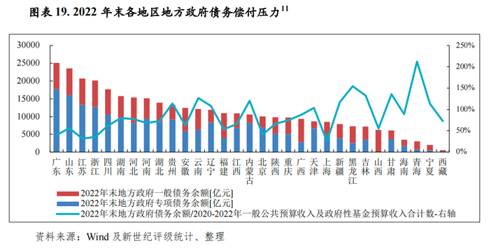 各地区存量地方政府债券偿付压力