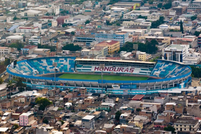 这是3月26日在洪都拉斯首都特古西加尔巴拍摄的国家体育场(无人机照片)。