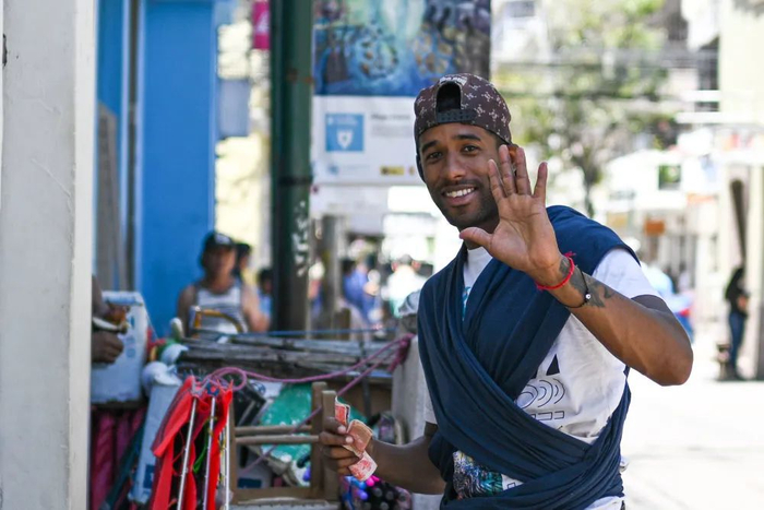 3月26日,一名男子在洪都拉斯首都特古西加尔巴一处街道上面对镜头挥手致意。